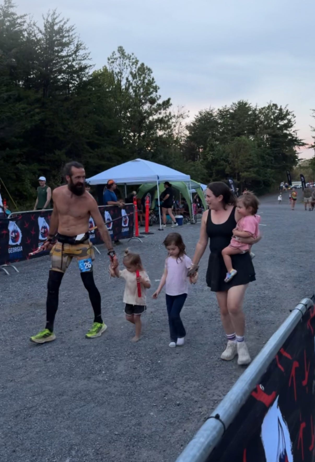 Sam ran with me through the night until sunrise. My older brother Steve joined for the final 19 miles. At every aid station, doubt whispered: “What if you rip something? What if you can’t see your girls in time today because you are taking so long? What if your brother gets hurt?” But God kept me. Not my willpower—His grace (2 Corinthians 12:9). Every mile became less about my strength and more about His sustaining hand.